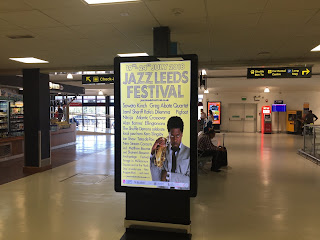 For a new jazz festival it is important to get some exposure just so people know you are on the scene! So JazzLeeds festival are really pleased they have been able to exhibit the new JazzLeeds festival 19-24th July to arrivals at the city's airport. The commuters to Leeds will also get their chance to be serenaded on Wed 18th July too at Leeds Station - the day before the Festival starts.