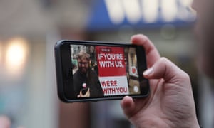 ‘People’s Vote says “it’s a matter for the donors if they want to go public”.’ People’s Vote campaigners record a social media message. Photograph: Gary Calton/The Observer